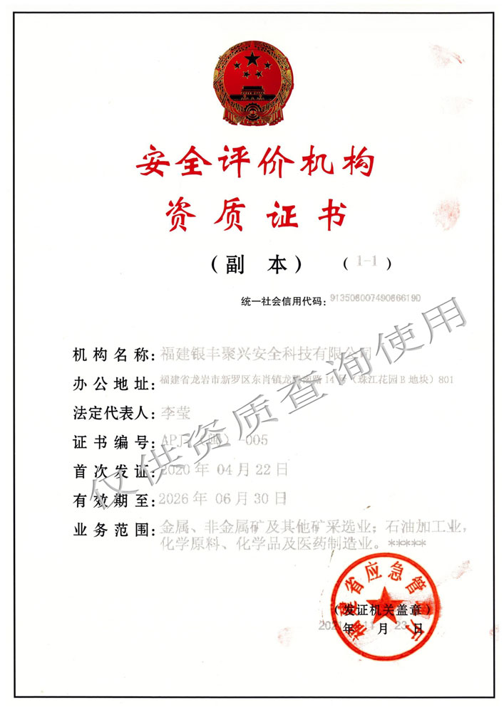 • 安全評(píng)價(jià)機(jī)構(gòu)資質(zhì)證書(副本)