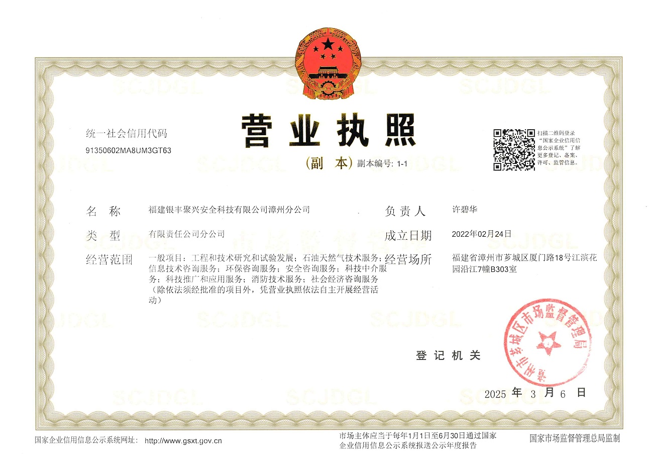 • 漳州分公司營(yíng)業(yè)執(zhí)照
